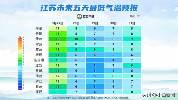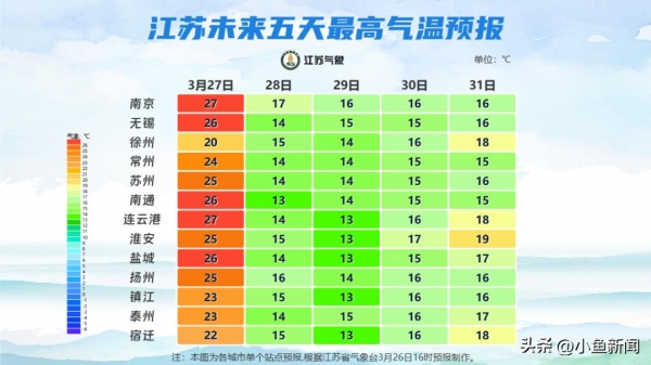 28日,全省的最高气温都将低于20℃。