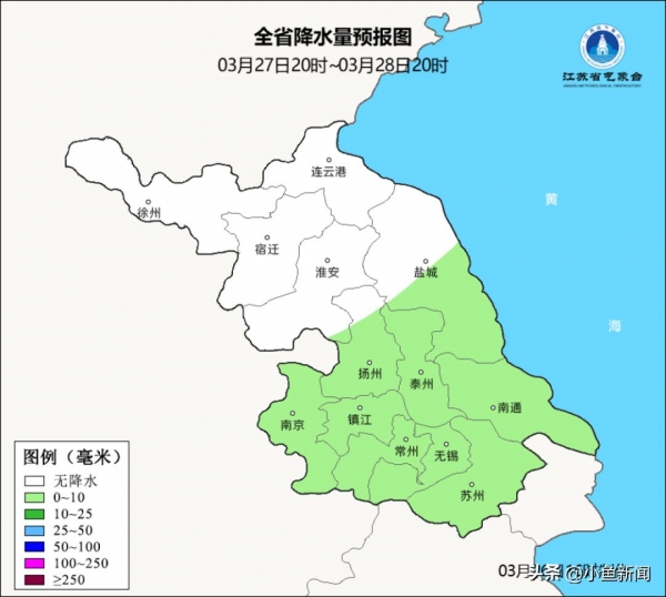 沿江和苏南地区的雨量能达到中雨量级