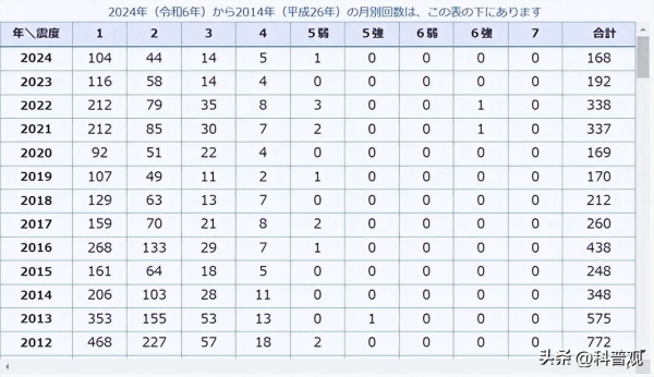 有相关数据资料显示,从2012年到2024年间,日本平均每月就会发生325次1级以上的地震,算下来,几乎每天都要发生10.8次地震,这是非常恐怖的。