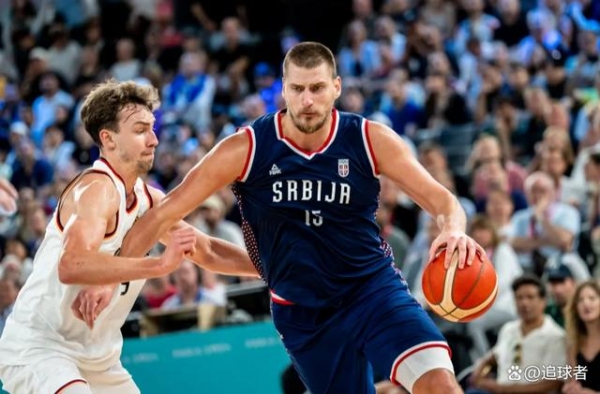易边再战,约基奇背传助攻队友、保护篮板以及禁区强硬2分,带队6-0领先到14分;面对德国7-2的攻势,约基奇吸引夹击助攻阿夫拉莫维奇命中三分,后者抢断一条龙打停比赛;暂停回来,约基奇大帽助阿夫拉莫维奇反击,塞尔维亚一波10-0领先19分;施罗德下场后德国队连中三分疯狂反扑,三节打完塞尔维亚仍领先9分。