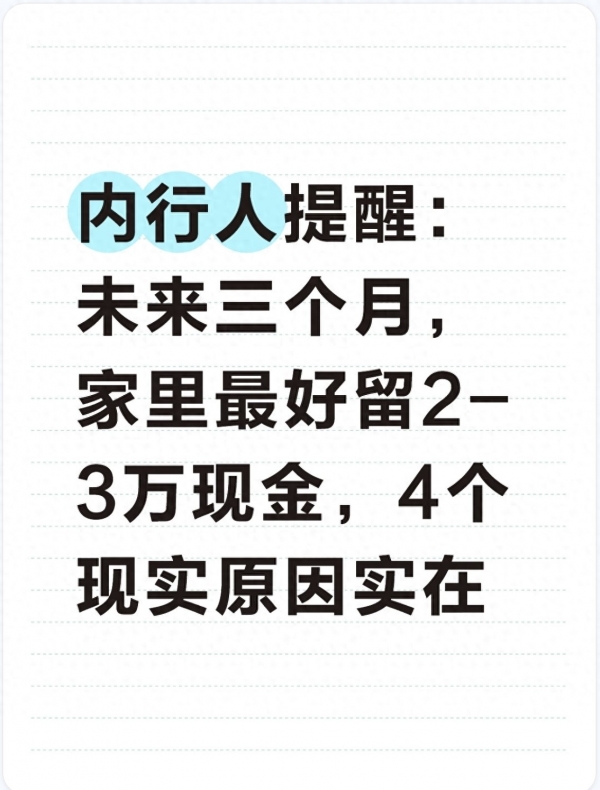 现在出门带个手机就能搞定一切,扫码付款、线上转账成了常态,不少人家里连钱包都找不到了,更别说存现金。但最近银行从业者、财务规划师都在提醒:未来三个月,普通家庭最好在家留2-3万现金。这不是复古,也不是危言耸听,而是基于现实场景的实用建议--这笔钱平时可能用不上,可一旦需要,就能帮你避开麻烦、遇事不慌。今天就用最实在的话,结合真实案例和权威数据,说说留这笔现金的4个核心原因,以及怎么存才安全、合理。