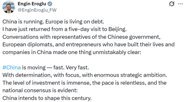2025年11月,埃罗格鲁访问中国。埃罗格鲁的X
