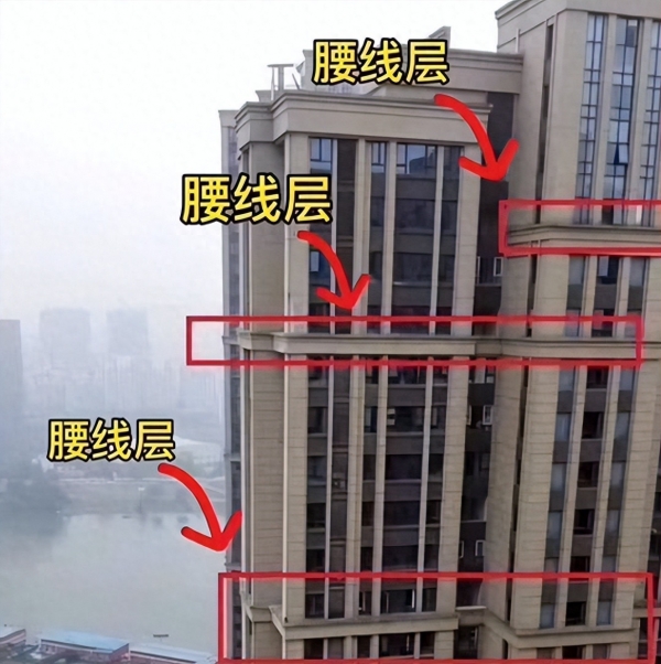 不少楼盘为了外立面好看,会在中间某一层加一道装饰结构,这一层通常就是大家常说的腰线层。