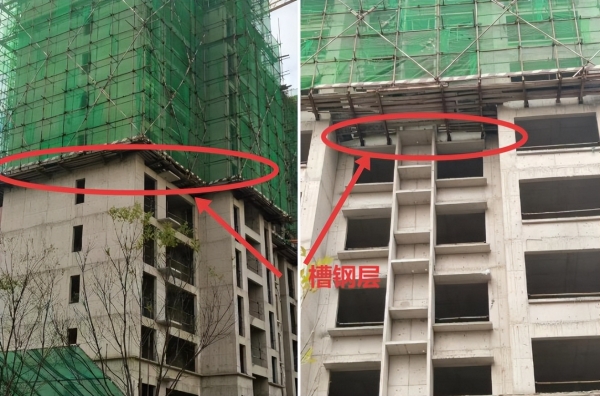 在建房阶段,为了固定外脚手架,施工方会在某些楼层预埋槽钢。
