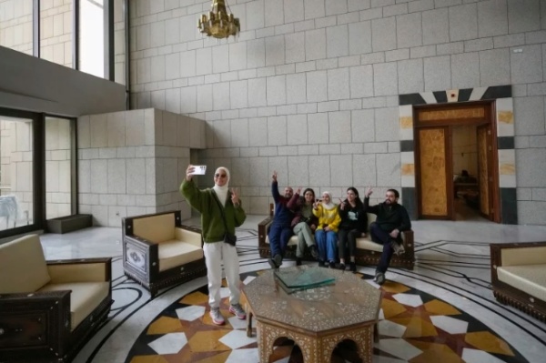美联社公布的照片显示,阿萨德的住所一片狼藉,书籍、画和其它个人物品散落在地上。一名男子试图拆走一盏灯,而其他人则在房间四处走动。另一群人则在微笑拍照。
