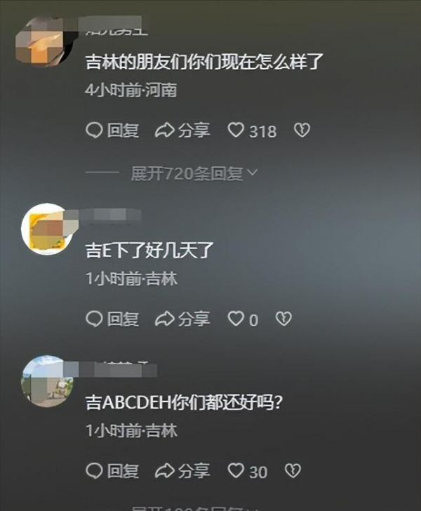网上可热闹了!吉林的朋友们纷纷问候彼此:"你们那儿咋样了?水大不大?"有的人还调侃说:"我这儿雨下得跟瀑布似的,都不用洗澡了,直接站在阳台上冲个凉得了!"