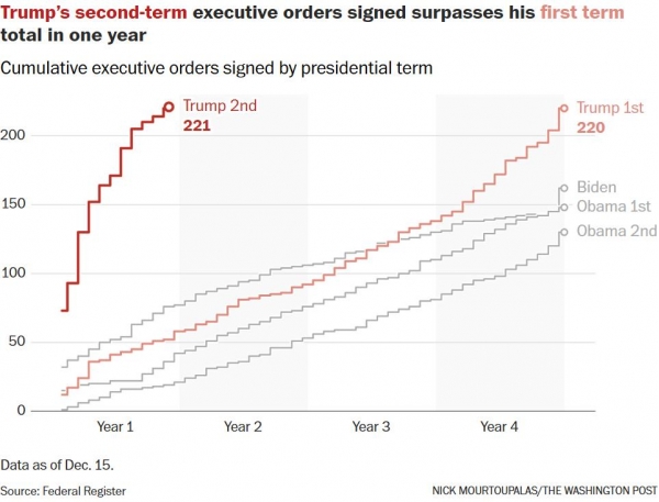 特朗普第二任期签署的行政命令数量超过了第一任期