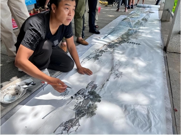 他走过170多个城市,遇见各种困难,甚至需要在险峰峻岭上搭个简陋的画架。大家都说,这小伙子也太有激情了,简直就是现代版的王希孟!