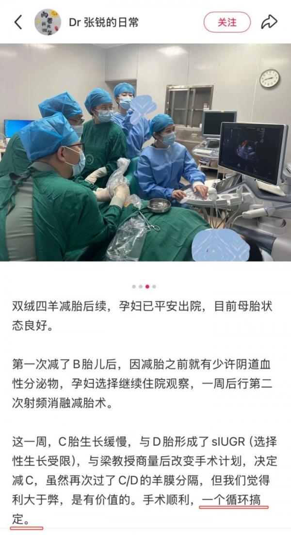 宝安妇幼医学遗传与产前诊断科主任医师张锐发布的手术记录。