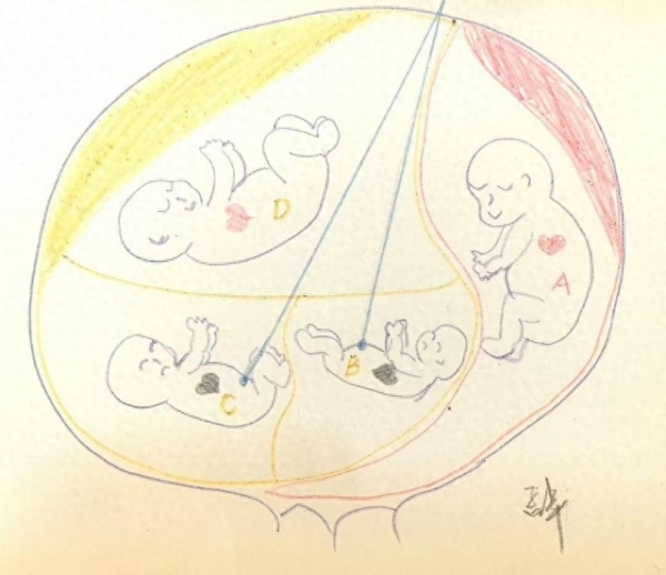 宝安妇幼超声科主任医师孟卓手绘的四胞胎图