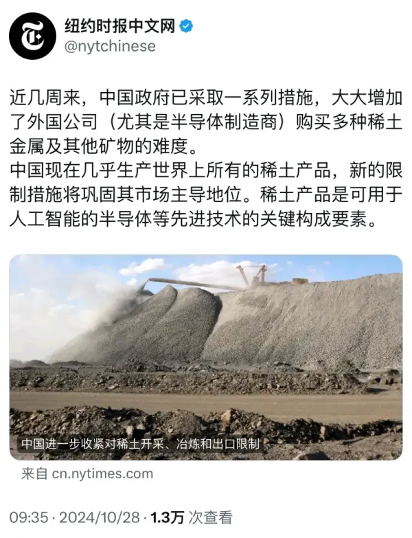 今年10月1日,中国政府正式启动了新的稀土出口管制政策,明确要求稀土矿物和其精炼产品的出口需获得许可,并在非法出口行为上加大处罚力度。这些措施提升了海外稀土供应的准入门槛,特别是对美国来说,依赖中国的稀土供应无疑是个心头大患。