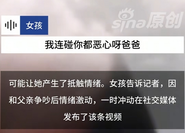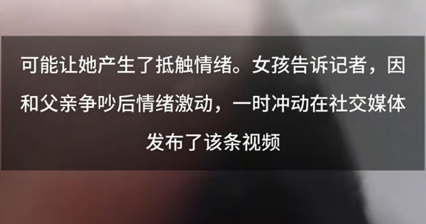 之后女孩也出面说明,承认视频是和父亲吵架后,一时情绪激动才发的,事后特别后悔,已经把视频删了。