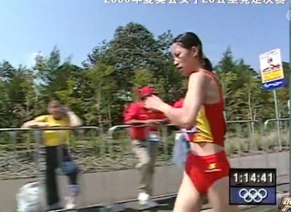 2000年悉尼奥运会,在女子竞走20公里项目上。中国田径选手王丽萍全程跟紧第一梯队,在其他领先选手都被罚下的情况下,王丽萍在实力和运气的加成下夺得了该项目金牌。王丽萍冲线那一幕,至今仍然让无数人铭记。没有人会想到,此前没有任何大赛积累的王丽萍会拿到冠军,王丽萍在冲线后没有人上前与她庆祝,她想要到看台上寻找一面国旗,但当天却没有工作人员准备。