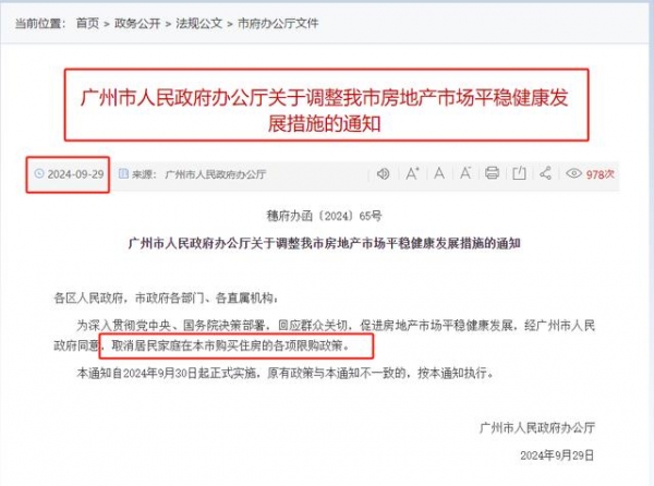 9月29日深夜,广州迫不及待地动手了。广州市政府发布《关于调整我市房地产市场平稳健康发展措施的通知》,正式官宣: