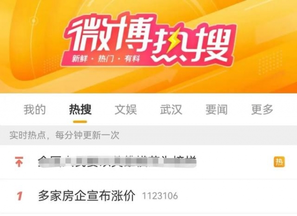 前几天,"多家房企宣布涨价",冲上了微博热搜第一。
