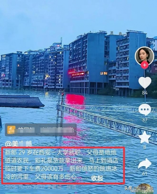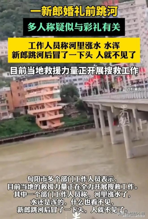 10月4日早上,新郎跳河的事件,迎来最新的进展。事实并非我们想象的那样是因为彩礼的事情,反而是因为婚礼的问题。