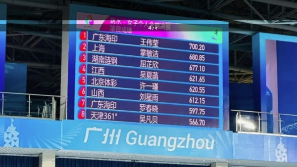 屈芷欣也不甘示弱,第九轮和第十轮接连发力,拿下67多分,但总分仍略逊一筹。最后两跳,王伟莹再度稳稳收官,总分700.20分!全场比分一公布,广东队教练团直接笑开了花。掌敏洁靠着最后几轮的爆发,以680.85分反超屈芷欣,拿下银牌。屈芷欣677.10分摘铜,也为湖南队添了光彩。