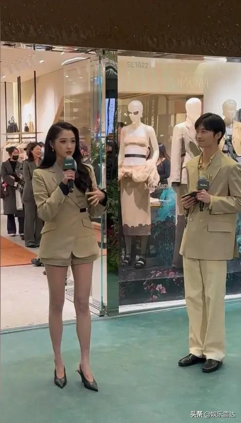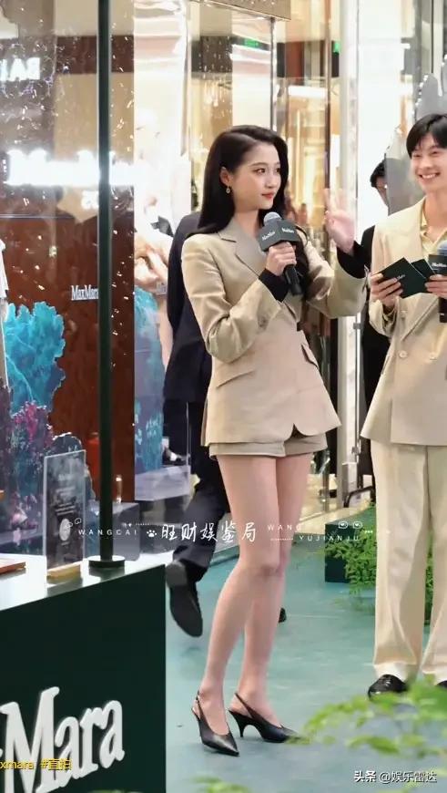说实话,要是仅看其下半身,那无疑是满分状态。她所穿的一双露脚背的高跟鞋,将其脚踝衬托得既细且白,而腿部线条流畅至极,仿若从漫画之中走出来一般。现场有人拍摄了一张对比照片,彼时她站立于工作人员身旁,那双腿的长度径直是人家的一倍之多。