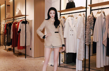 首先来讲讲这身衣服,它是浅咖色的西装套装,呈现出的是那种"老娘不好惹"的职场御姐风格。然而,当你稍微靠近去仔细查看时,会发现西装上面布满了褶子,而且面料看上去有些诡异不普通,完全没有一点大牌应有的高定质感。