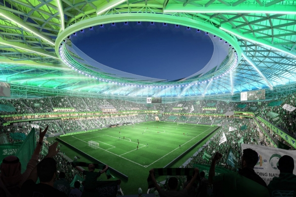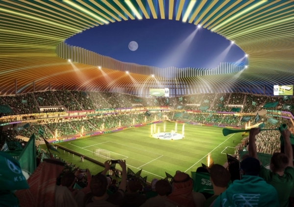 比如能装9.2万人的萨勒曼国王体育场,设计灵感居然是"种子发芽",绿墙、屋顶花园往那儿一摆,跟周边公园无缝衔接,生态感直接拉满;还有ROSHN体育场,把沙特水晶地貌搬成了"利雅得地标",光是颜值就够自媒体博主拍一百条打卡视频。