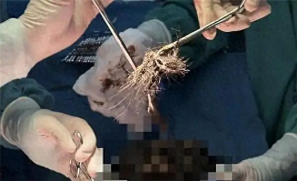 切开胃壁后,一个混杂食物残渣、形如"黑色小西瓜"的发石显露出来。为避免损伤胃壁,医生小心翼翼地将发石切割、分解,分块取出。历经两个多小时,重达4斤的头发碎片被成功清除,妮妮的胃终于得以"减负"。