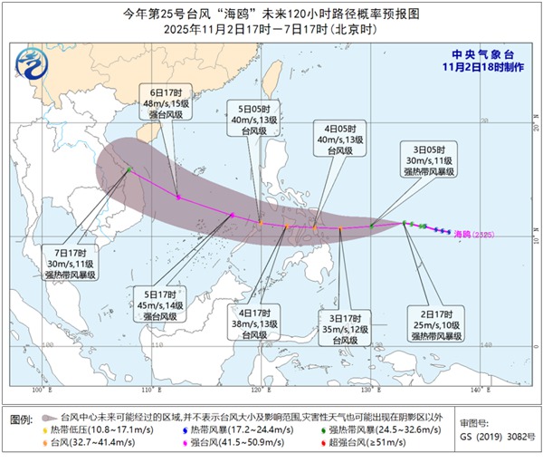 今年第25号台风"海鸥"5日开始将进入南海。欧阳翼介绍,目前预报来看,"海鸥"大概率不会登陆我国,但下周会导致南海出现大风,海南部分地区也可能出现降雨。