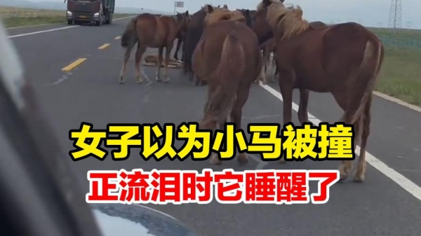 网友:小马只是累了躺地上休息一下,害得女生以为它重伤身亡了。