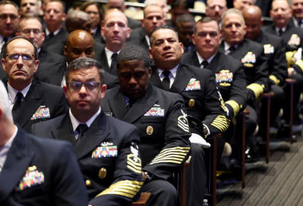 面对世界各地飞来的高级将领,赫格塞思为自己解雇军中高层辩护,其中包括一位黑人美军总参谋长和一位女性海军上将。他说,这些被解职的军官代表了一种"病态文化"。