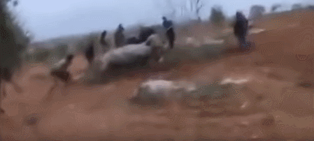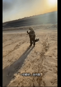 如果观看这段完整视频,该美国飞行员从一开始就是单膝下跪举手投降姿势,周围有很多开车赶过来的科威特民众,其中上图白衣人一马当先,拽走飞行员身边的背包,并用手中钢管指着飞行员不断质问,吓得飞行员后退站起来,不停摇摆双手,随后再次跪下举手投降。