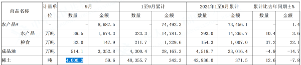 同时,今年9月,我国进口稀土6864.7吨,今年前9月累计进口7.88984万吨、累计出口4.83557万吨。