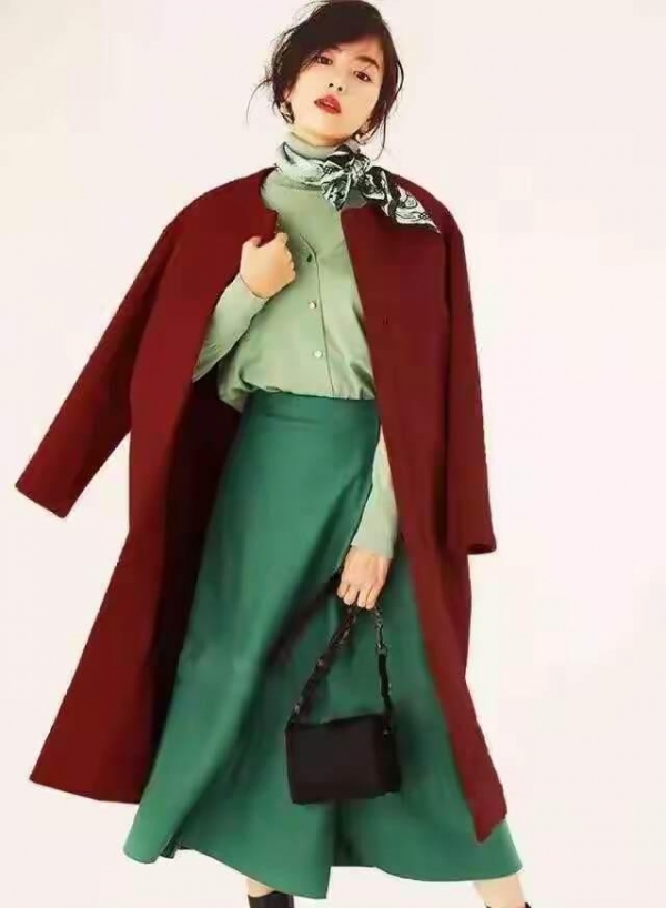 如果嫌搭配麻烦,直接把红色缩成配饰:一条羊毛围巾、一只手拿包、一对耳钉。别小看这一抹点睛,它比大面积着装更高级。