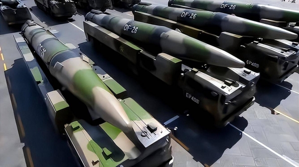 东风-26导弹核常兼备、慑战一体,具有"远射程、高精度、强突防"等特点,能够对地面、地下、海上等多种目标进行精确打击。