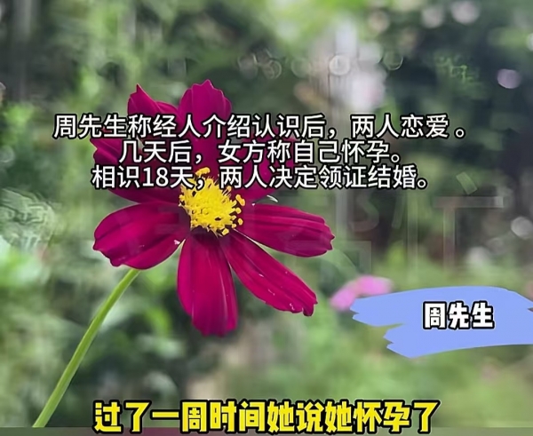 这恋爱关系刚确定没几天,女子就在一周后给了周先生一个大惊喜,拿出验孕棒,称她已经怀上了周先生的孩子。