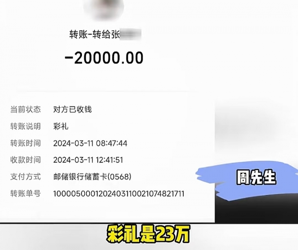 眼看着孩子都揣到女方肚子里了,两个人顺理成章的奉子成婚,周先生一家也是拿出了23万的彩礼钱。