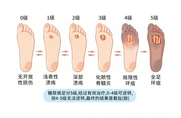 而腿脚离心脏较远,血液循环会差一些,当高血糖导致血管管腔变小、病变较重时,缺血症状就会较明显。对糖尿病患者来说,"足部溃烂坏死"是常见致残原因。