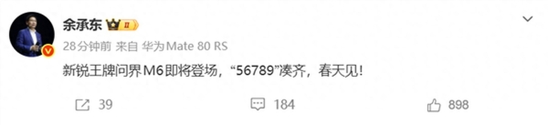 2月2日,华为常务董事余承东正式官宣问界M6即将登场,届时问界将凑齐M5至M9的"56789"产品矩阵。这款定位五座中大型SUV的新车,能否成为问界冲击25-30万级市场的关键棋子?