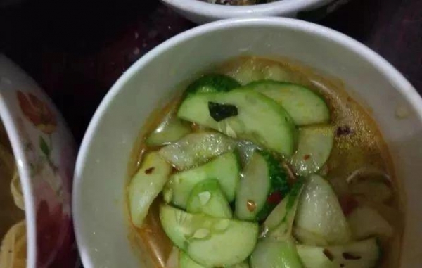 凉拌黄瓜:丈母娘一家子都喜欢吃黄瓜,特别是凉拌黄瓜,每隔3,5天就吃上一会,有时还弄来当零食吃,黄瓜切片,加入糖、盐、醋、生抽、香油。搅拌之后等待一会便可以食用。