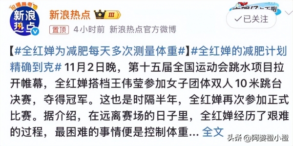 为了控制体重,全红婵执行着极为严格的减肥计划,据报道,她每天需要多次测量体重,计量单位甚至精确到了克。