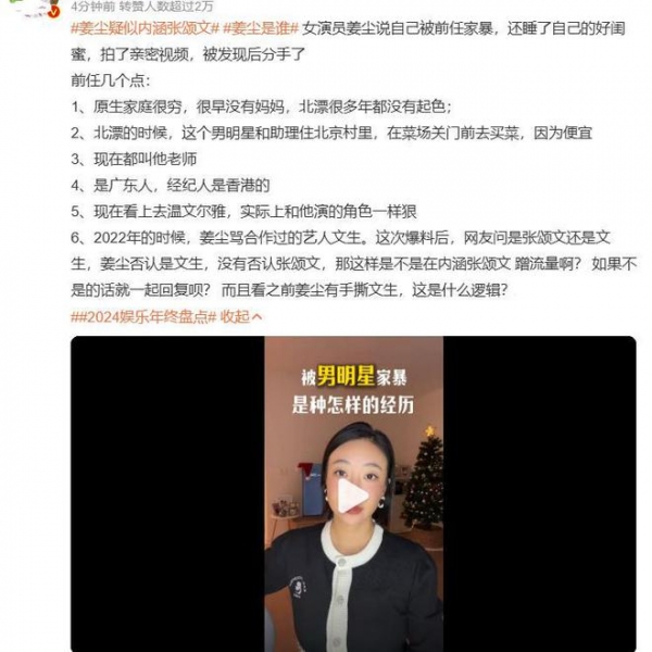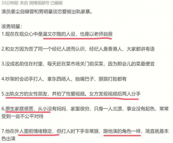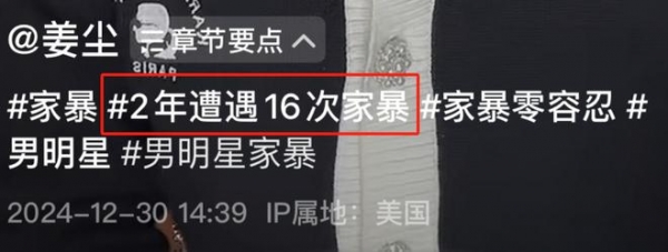 就在昨天,演员姜尘在自己的社交平台发文表示自己被家暴。