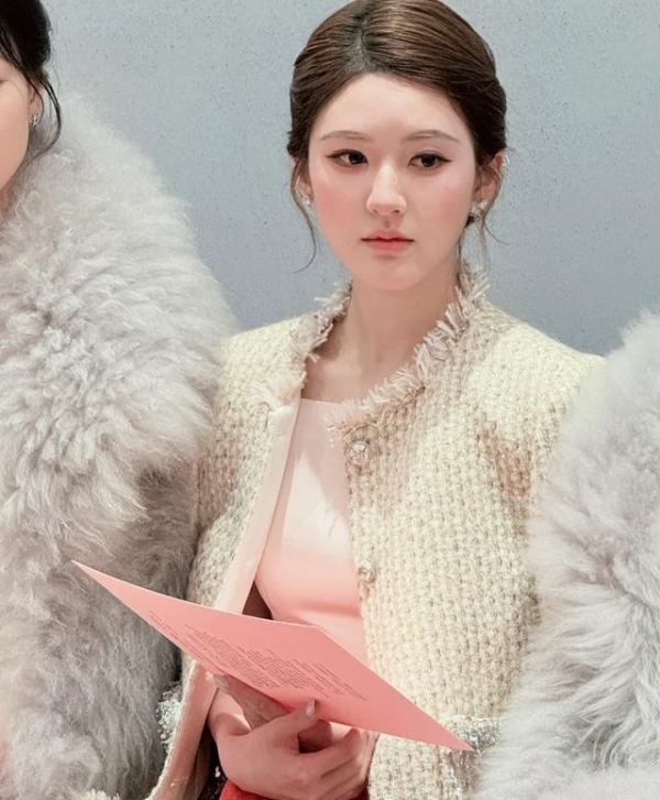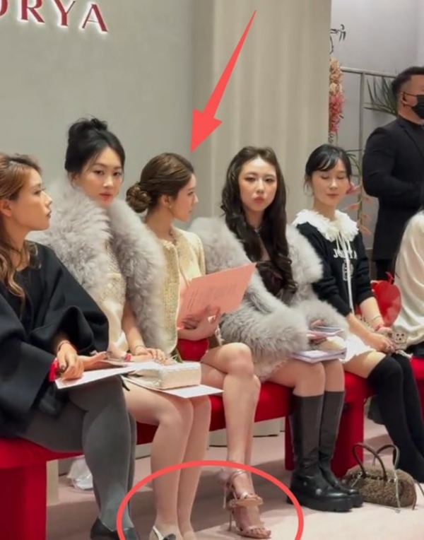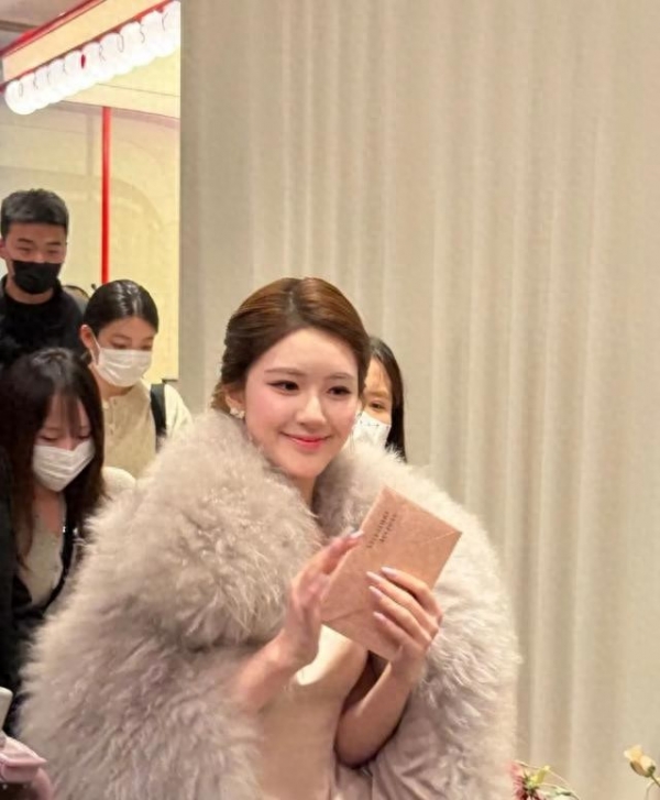 就是一个奢侈品活动,她穿一身粉色吊带裙,化了个现在很火的泰妆,头发染成浅金色。