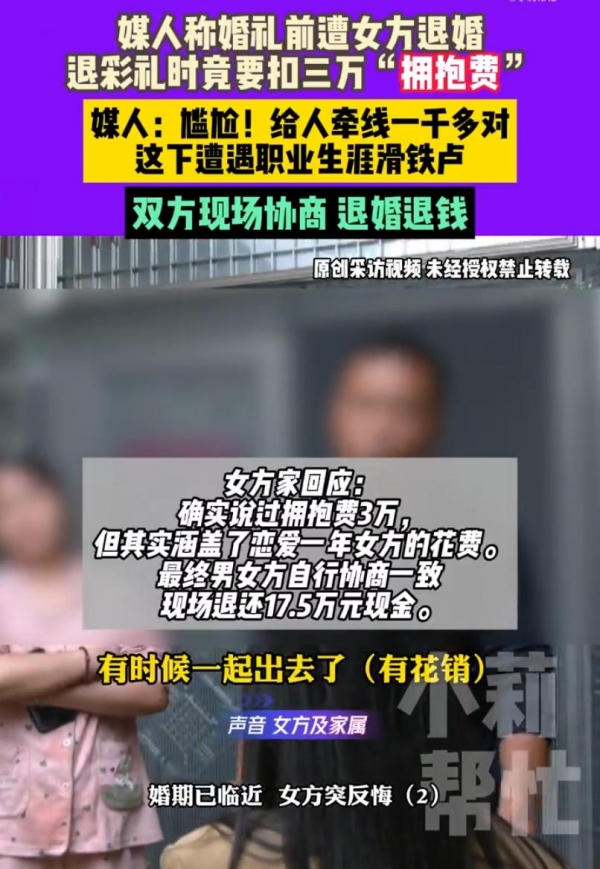 女方家回应:确实说过拥抱费3万,但其实涵盖了恋爱一年多女方的花费。