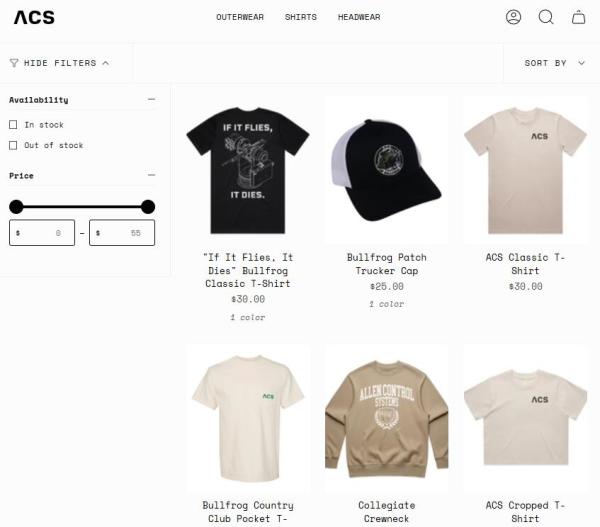 有趣的是,ACS的创始人在此之前从事的行业与无人机防御这一领域关联并不大。根据其官网上的描述,该公司由卢克·艾伦(任首席技术官)、史蒂夫·西蒙尼(任首席执行官)和迈克·维奥尔(任总裁)三人联合创立,其中西蒙尼和艾伦曾在美国海军担任核反应堆仪表控制工程师,退役后创立过一家餐饮软件和机器人公司BBOT,两人随后结识了担任餐厅销售终端交易系统公司OMNIVORE首席执行官的维奥尔之后,在两家涉及餐饮的公司于2022年分别被收购后,三人一同创立了本文中所提到的ACS公司。说到网站,该公司的网站也非常具有初创公司特色,尽管其拳头产品"牛蛙"仍在处于某种原理或工程测试中,但带有"牛蛙"武器站产品图案或公司商标的印花文化衫和棒球帽,则早早已经作为周边产品上架开售。