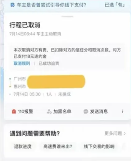 女生提供的哈啰出行投诉截图显示,表明了此事中司机有违规的行为 ,但是平台能审核到的只是司机故意让乘客取消订单后线下交易的违规之事。对此,平台对司机作了相关处罚信用扣分!