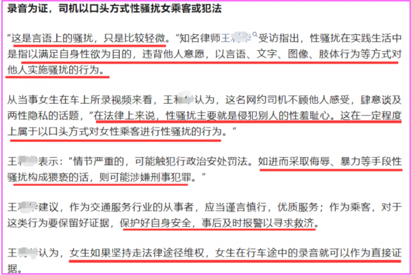 从这段录音,我们能确认,司机确实是聊了不应该聊的隐私话题,而且他在有女性在场的情况下,毫不尊重女生的行为,这司机的言行已经涉嫌猥亵、侮辱!