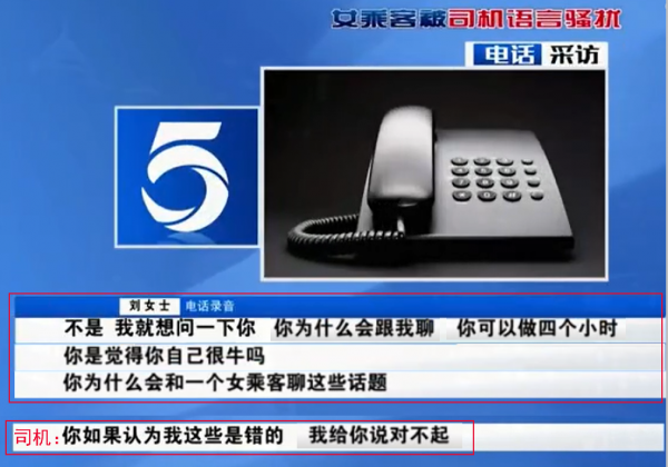 至于司机聊到成年人的话题,他还说自己时长可达4小时,这类极不雅的语言,通过刘女士电话质问了司机:"为何要和一个女乘客聊这些话题,你为什么会跟我聊'你可以.....小时',你是觉得你自己很牛吗?"得到司机的回复是"你如果认为我说这些是错的,我给你说对不起"。他的意思是自己认为不错,要错也是女生认为错。这分明不是道歉,是知错不改,是在顽固地为自己狡辩。