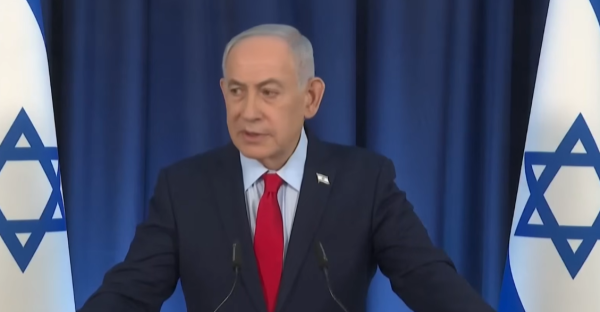 以色列总理内塔尼亚胡当地时间3月19日发表视频讲话,否认以色列将美国卷入冲突。 视频截图