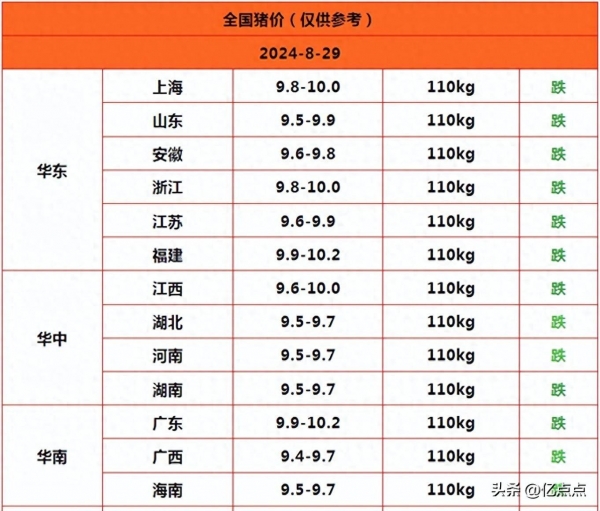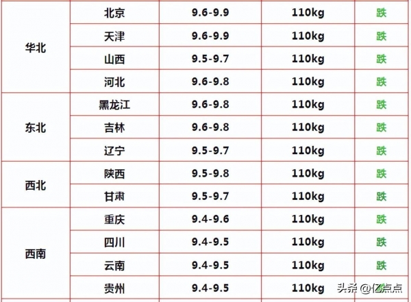 牧原在河南的猪价直接跌了0.4元/公斤,温氏在广东也下调了0.2元/公斤。这降价潮就像是多米诺骨牌一样,一倒全倒。大北农、新希望这些行业巨头在东北也是纷纷下调价格,有的2毛,有的3毛,温氏在湖北更是直接下调了4毛/公斤,在广东也是继续降价。