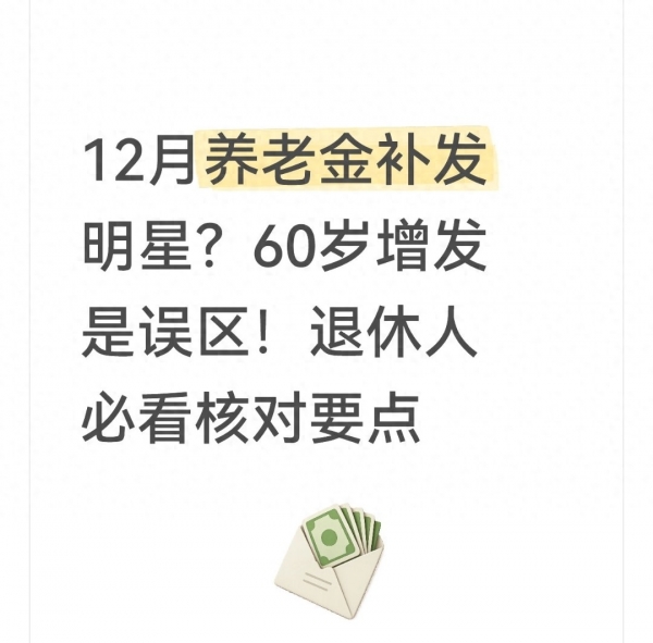 退休后最在意的莫过于每月养老金到账的动静,不用慌着算计开支,不用操心日常用度,这份稳稳的收入,就是晚年生活里最实在的安全感。可一进12月,不管是小区长椅上聊天,还是家人群里的消息,总被两个话题刷屏:12月15日是不是要启动养老金补发了?是不是满60岁退休,每月就能多领一笔钱?越听越迷茫,怕漏了该得的福利,又怕被不实消息勾着空欢喜。我特意查了多省人社局最新公告,也帮家里长辈核对了社保明细,今天就用最实在的大白话,把这些事捋清楚,全是经得起核实的干货,没有半分虚头巴脑的内容。