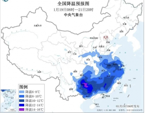 除了暴雪,寒潮也跟着来了。1月19号到21号,黄淮以南的地方,气温要下降6到10℃。江淮西部、江南东北部和南部、华南西部和北部及贵州中东部这些地方,降温能到10到14℃,局地甚至能降16℃以上。21号早上,0℃线要南压到贵州南部、广西北部、江西中部、浙江南部一带。