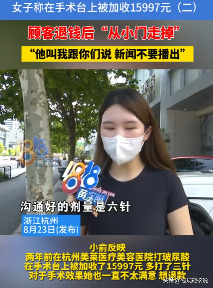 "被坑了!"浙江杭州,一女子到整形医院打玻尿酸,填充脸部的轮廓,却不料,术前商量好6针,在手术台上医生竟然强行额外收取了15997元的费用,事后女子向记者求助,负责人的一番话更是惊呆众人。